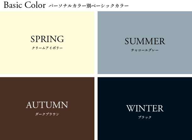それぞれ4つのパーソナルカラータイプには得意なベーシックカラーがあります。